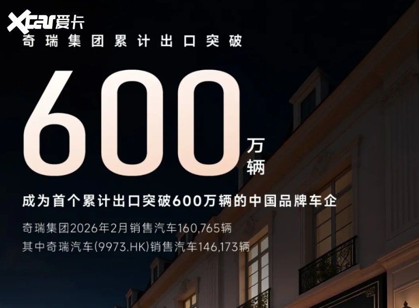 2月,奇瑞集团销量为16.1万辆,其中出口销量近12.5万台,同比增长41.5%。1-2月份,奇瑞累计销售汽车36.1万辆,出口超24.4万辆,同比增长44.7%